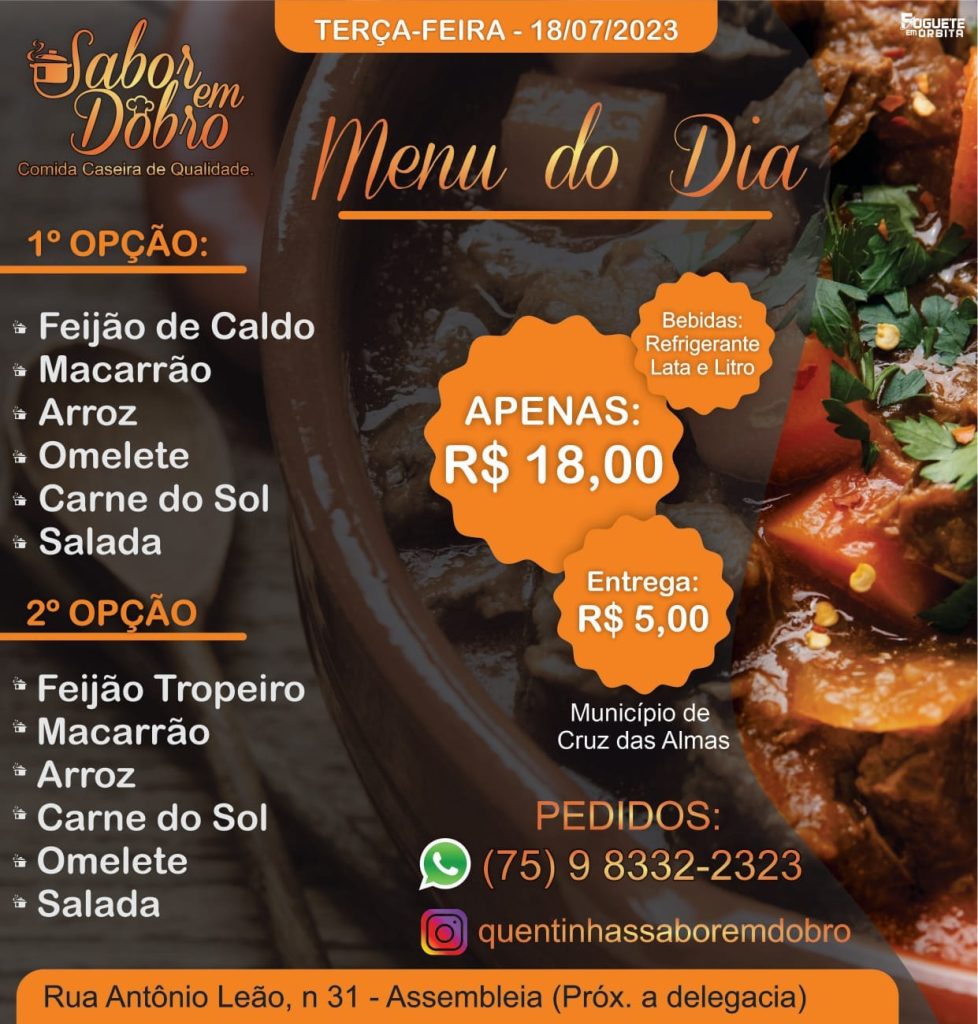 Faça seu pedido de Quentinhas no Sabor em Dobro; Confira o menu desta terça-feira (18)