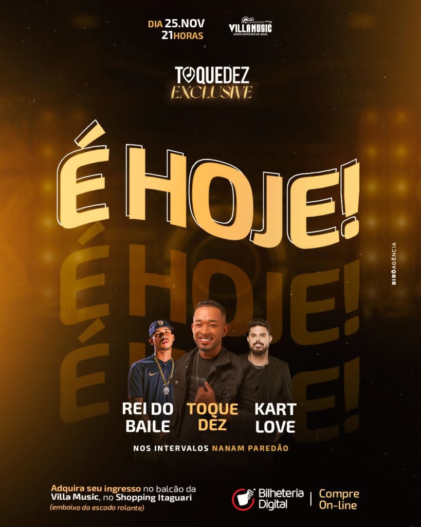 Chegooou o grande dia! 🤗 Estávamos ansiosos e não víamos a hora dessa noite chegar pra receber cada um de vocês e juntos nos divertirmos! 🔥 Chegue cedo, evite filas, confira seu ingresso e VEM SER FELIZ. Até daqui a pouco! #VillaMusic #ÉHoje #EuViu #ToqueDezExclusive #ToqueDez #ReiDoBaile #KartLove #MidiaFest