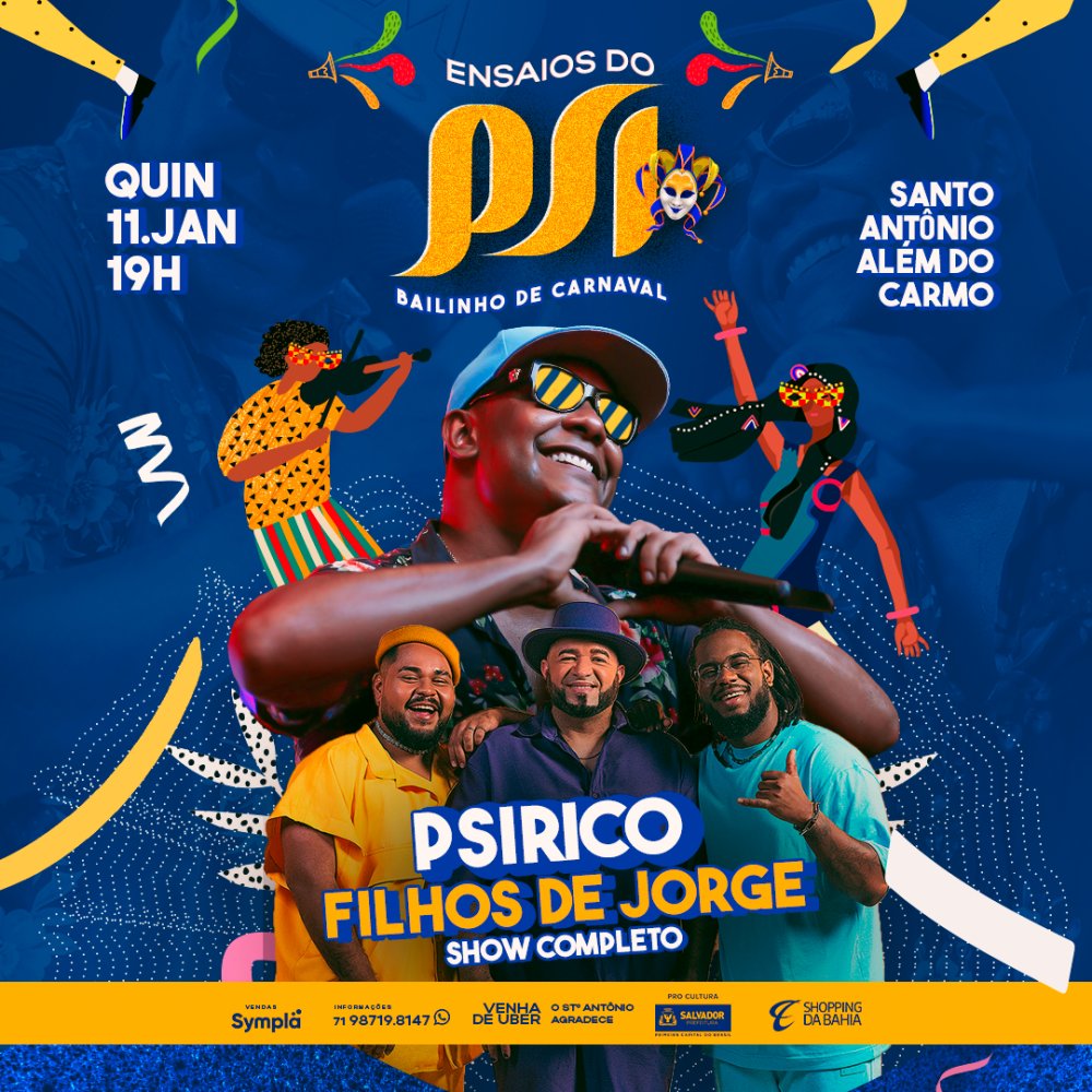 No dia 11 de janeiro de 2024, quinta-feira, a partir das 19h, o Ensaio do Psi promete agitar a Área de Eventos da Igreja Santo Antônio Além do Carmo. As atrações confirmadas incluem Psirico, Filhos de Jorge e convidados especiais. Os ingressos estão disponíveis podendo ser adquiridos através do Sympla. SERVIÇO: ENSAIO DO PSI Atrações: […]