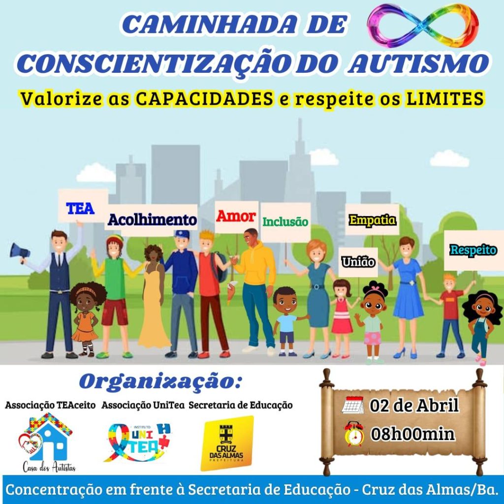 Dia do Autismo: Caminhada de Conscientização ao Dia Mundial do Autismo, acontece nesta terça-feira, (02), em Cruz das Almas