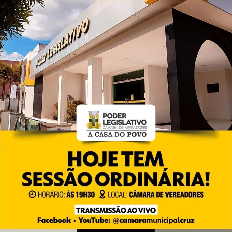 Hoje, 1°, logo mais às 19h30, acontece a 7ª Sessão Ordinária da Câmara de Vereadores de Cruz das Almas. A sessão será transmitida na página do Facebook (@camaramunicipalcruz) e no canal do YouTube (Câmara Municipal Cruz) e nas emissoras de rádio Santa Cruz FM 87.9, Excelsior Recôncavo FM 105.1 e Transbrasil FM 93.7.