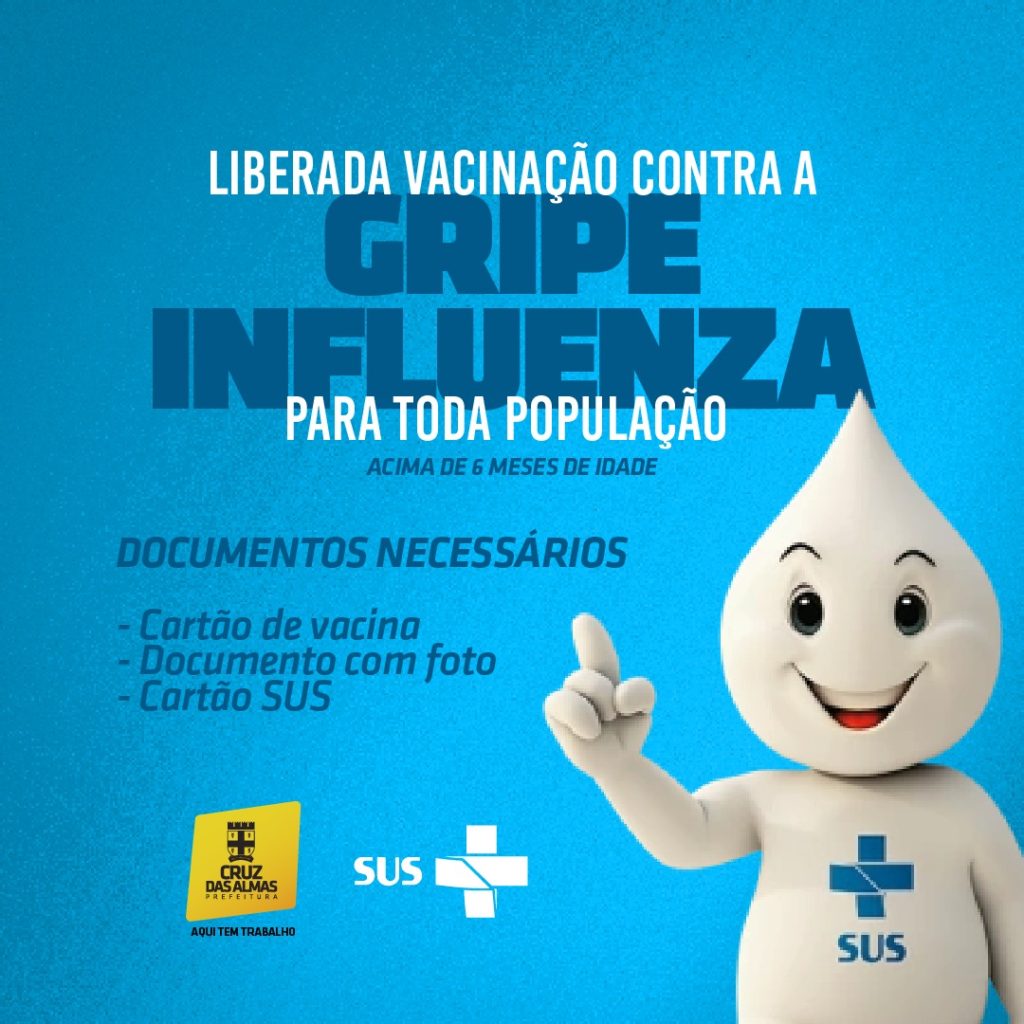 Prefeitura de Cruz das Almas amplia vacinação contra a Gripe para o público geral acima de 6 meses