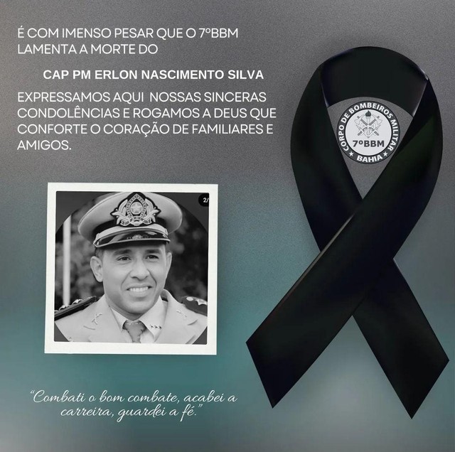 É com imenso pesar que o 7º BBM lamenta a morte do Cap PM Erlon Nascimento Silva. Expressamos aqui nossas sinceras condolências e rogamos a Deus que conforte o coração de familiares e amigos.
