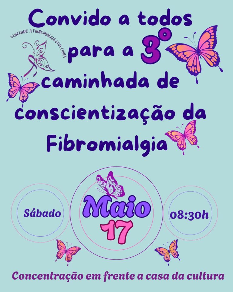 Participe da 3ª Caminhada pela Conscientização da Fibromialgia. Caminhe conosco nessa causa! Vamos juntos transformar dor em movimento, invisibilidade em visibilidade, e silêncio em ação.