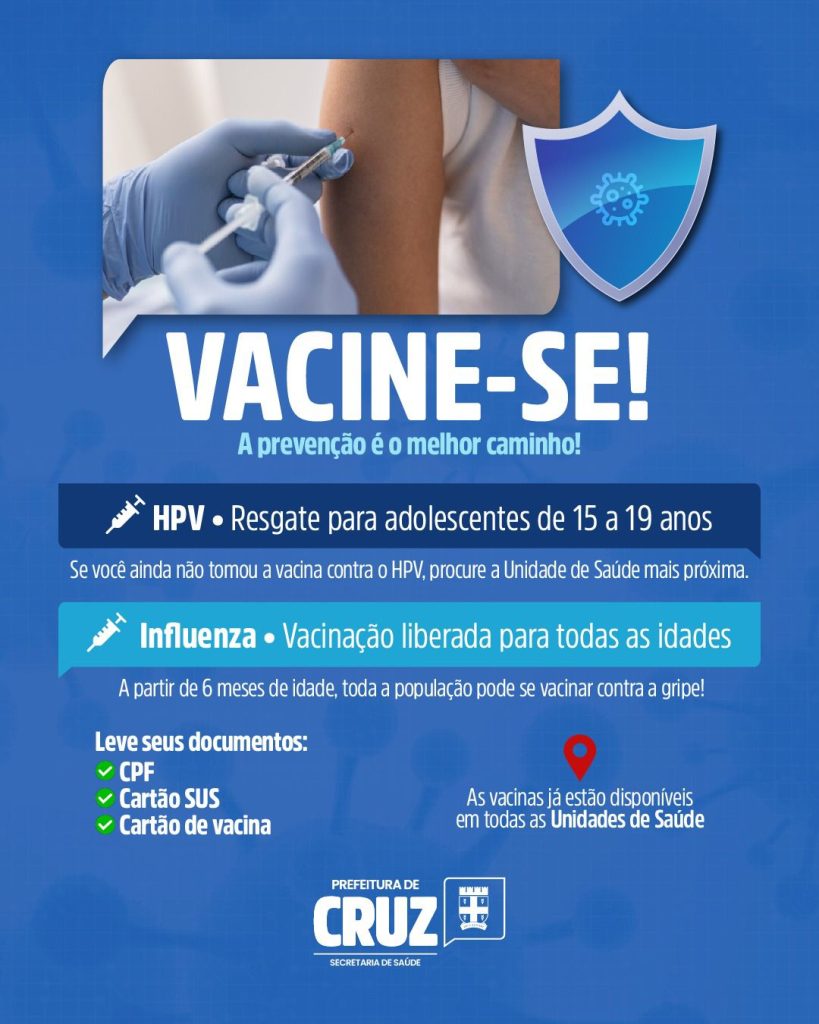 Prefeitura de Cruz amplia vacinação contra HPV e Influenza