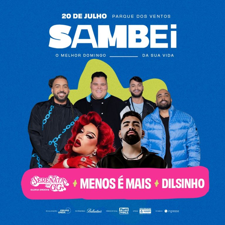 No dia 20 de julho, a Arena Parque dos Ventos, na Orla da Boca do Rio, será o palco de um encontro vibrante entre o samba, o pagode e o pop. E a estreia vem pesada: Menos é Mais, Dilsinho e Gloria Groove comandam os shows da noite!
