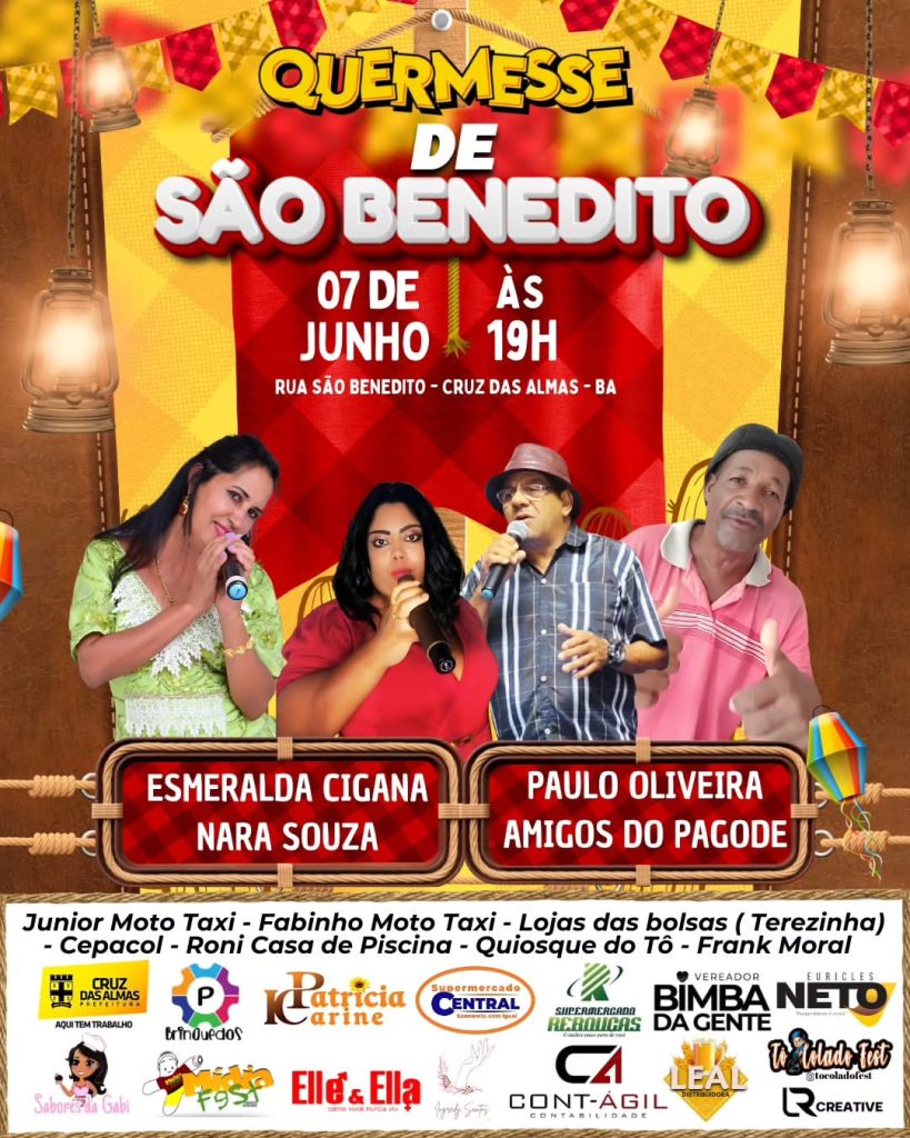 E aí galera, vocês pediram festa? Então segura essa! No dia 07 de junho, o nosso encontro já tem hora e lugar marcado: é na Quermesse de São Benedito, em Cruz das Almas! Prepare-se pra uma noite inesquecível com os shows incríveis de Esmeralda Cigana, Nara Souza, Paulo Oliveira e Amigos do Pagode! 🗓️ Data: […]