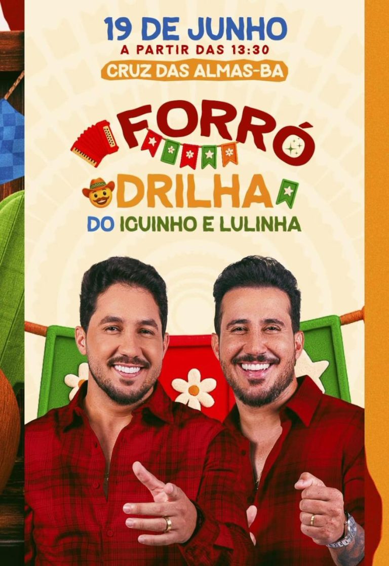A dupla de forró e piseiro Iguinho e Lulinha está confirmada como atração surpresa na abertura oficial do São João de Cruz, nesta quinta-feira (19). Conhecidos em todo o Brasil, os artistas escolheram Cruz das Almas para lançar o projeto ForróDrilha, marcando presença com uma apresentação especial que promete agitar o público.