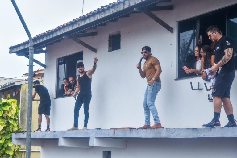 Em um momento surpreendente e inesquecível, os cantores desceram do palco no trio elétrico e subiram na marquise da casa de número 801. Da sacada, seguiram com o show, levando o público ao delírio.