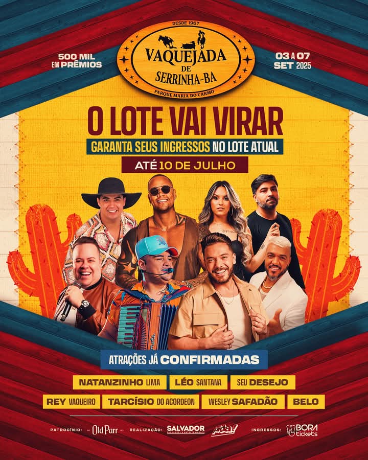 🚨 ATENÇÃO: VIRADA DE LOTE DIA 10 DE JULHO! 🚨 Tá esperando o quê? Vai mesmo ficar de fora da maior vaquejada do Brasil? 👀 De 03 a 07 de setembro, o Parque Maria do Carmo vai estremecer com um time de peso que vai fazer história: 🎤 Natanzinho Lima🎤 Léo Santana🎤 Seu Desejo🎤 Tarcísio […]