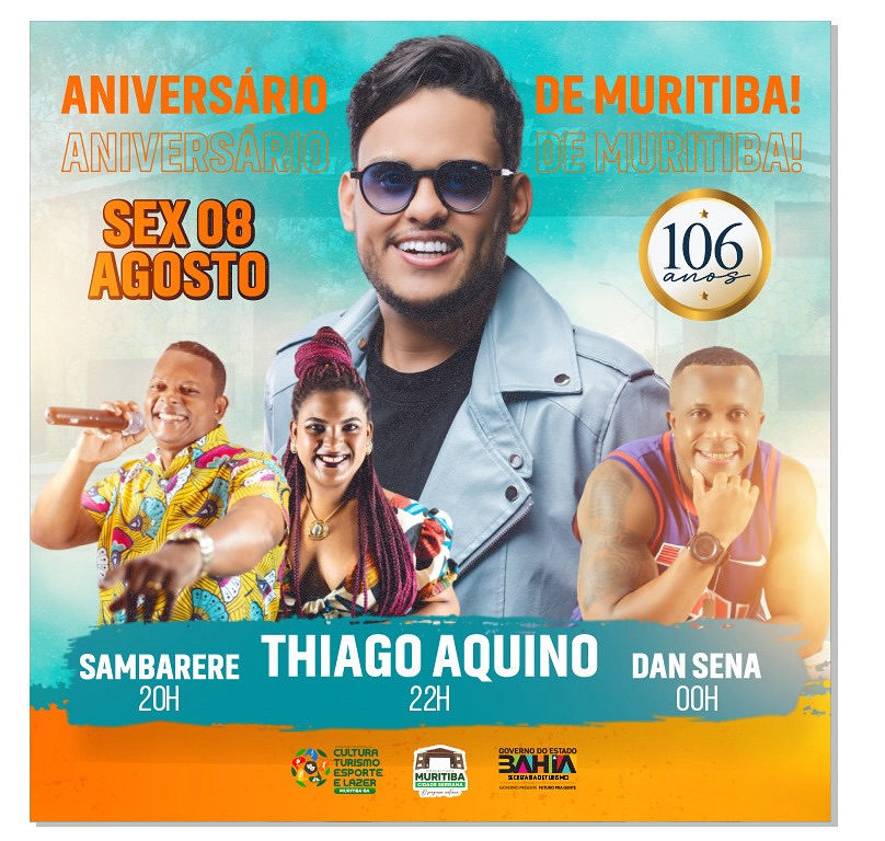 🎉 Muritiba vai fazer história! 🎉 No dia 08 de agosto, a cidade comemora seus 106 anos com uma festa inesquecível na Praça Getúlio Vargas! Prepare-se para uma noite de muita música, energia e alegria com atrações que vão agitar o público: 🎤Thiago Aquino🎤Dan Sena🎤Sambarerê 📲 Siga o @midiafestof e fique por dentro de tudo […]