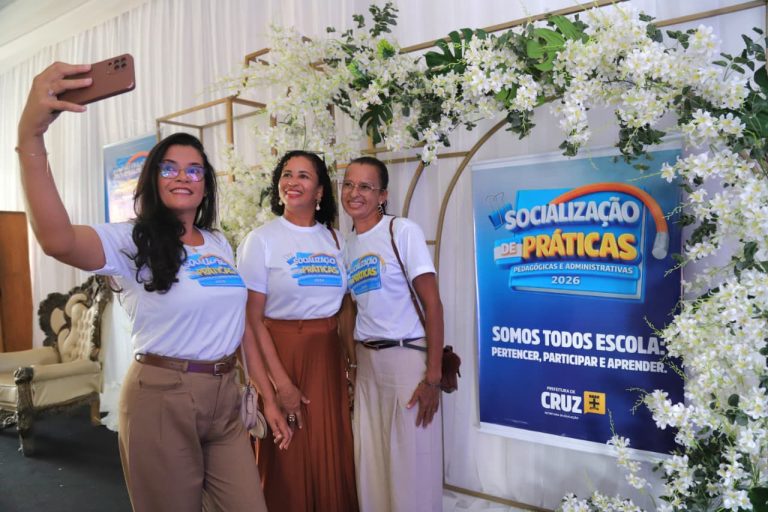 Os profissionais da rede municipal de ensino viveram um momento especial no retorno às atividades durante a abertura da Socialização de Práticas Pedagógicas e Administrativas 2026, realizada nesta terça-feira (03). Promovido pela Prefeitura de Cruz, por meio da Secretaria de Educação, o evento aconteceu na AABB e marcou oficialmente o início do ano letivo, reunindo servidores da educação em um dia dedicado ao acolhimento, à formação continuada e ao planejamento.