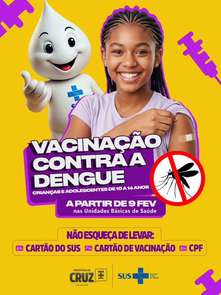 A vacina contra a dengue começará a ser aplicada nos postos de saúde de Cruz das Almas a partir desta segunda-feira (9). Inicialmente serão imunizadas crianças e adolescentes de 10 a 14 anos. Para receber a vacina, é necessário apresentar Cartão do SUS, Cartão de Vacinação e CPF. A Prefeitura de Cruz, por meio da […]
