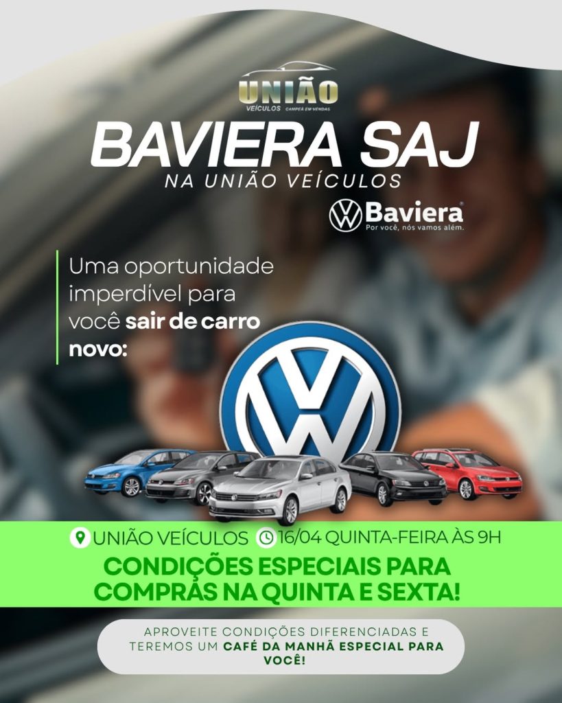 Atenção, apaixonados por Volkswagen! Nesta quinta (16) e sexta-feira (17), a Baviera SAJ estará na União Veículos, em Cruz das Almas, com condições especiais para você que está pensando em sair de carro novo. E tem mais: além das ofertas diferenciadas, você será recebido com um café da manhã especial, preparado para começar o dia […]