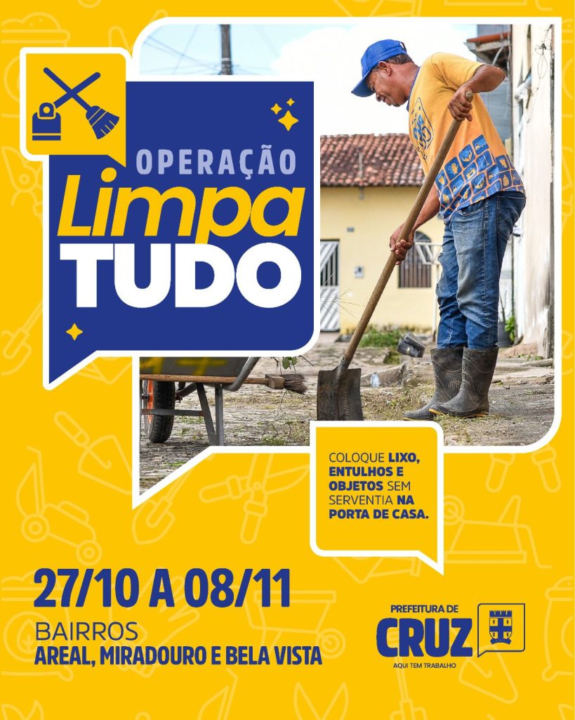 Prefeitura de Cruz realiza Operação Limpa Tudo no Areal, Miradouro e Bela Vista a partir de segunda (27)